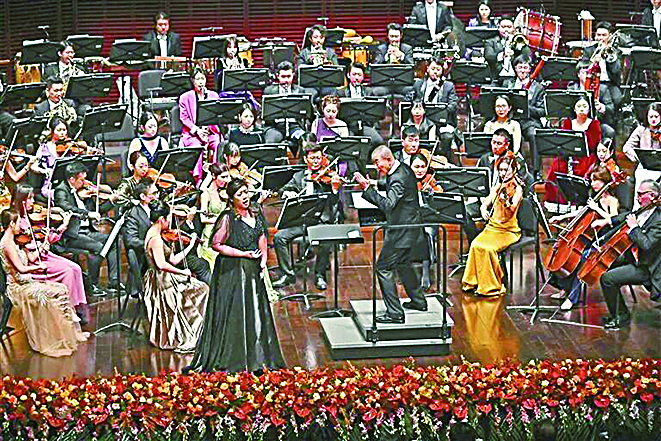 音乐会以深情磅礴的《灯火里的中国》开篇,这首时代之作在交响乐团与童声合唱团的演绎中,抒发温暖而恢宏的家国情怀。随后,《云雀》《天鹅》《月光》展现了西方经典魅力。由钟嘉欣演绎的谭盾原创作品《九色鹿》,则融合神话意象与空灵声线,引领观众步入奇幻的音乐叙事。下半场,《马头琴协奏曲》让古老民族器乐与现代交响共鸣,《波莱罗舞曲》《波罗维茨舞曲》则以奔放旋律点燃全场气氛。
