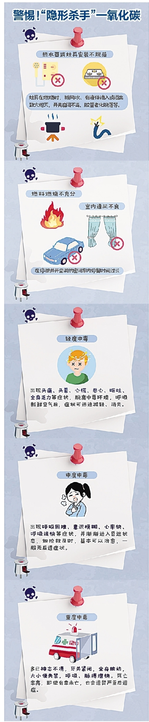 实际上,这并不是孤例。据龙岗区应急管理局有关安全专家介绍,每年11月至次年3月是生活中一氧化碳中毒的高发季节,发生事故的场所主要集中在烧炭取暖的密闭房间、排烟不良的家庭厨房、热水器安装不当的卫生间,或者在不通风房间吃炭火锅、围炉煮茶……其中,2023年1月5日,湖南岳阳一出租房内就曾发生因长时间使用热水器,导致5人因一氧化碳中毒不幸身亡的惨剧。