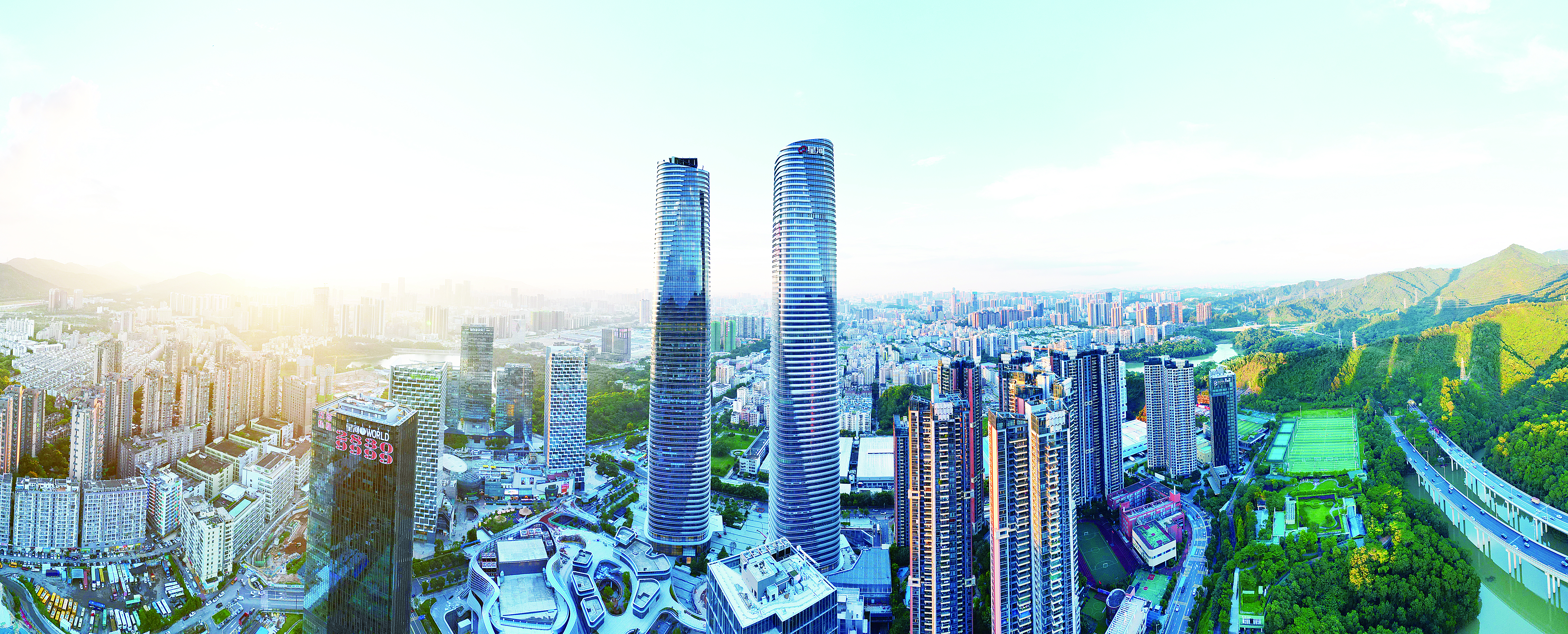 2月9日,深圳市七届人大七次会议在市民中心礼堂开幕,市长覃伟中代表市政府向大会作政府工作报告。本报通过一组关键词,带您读懂政府工作报告中的“龙岗元素”。图为龙岗区坂田星河WORLD双子塔。龙岗融媒记者 张臻斐 摄