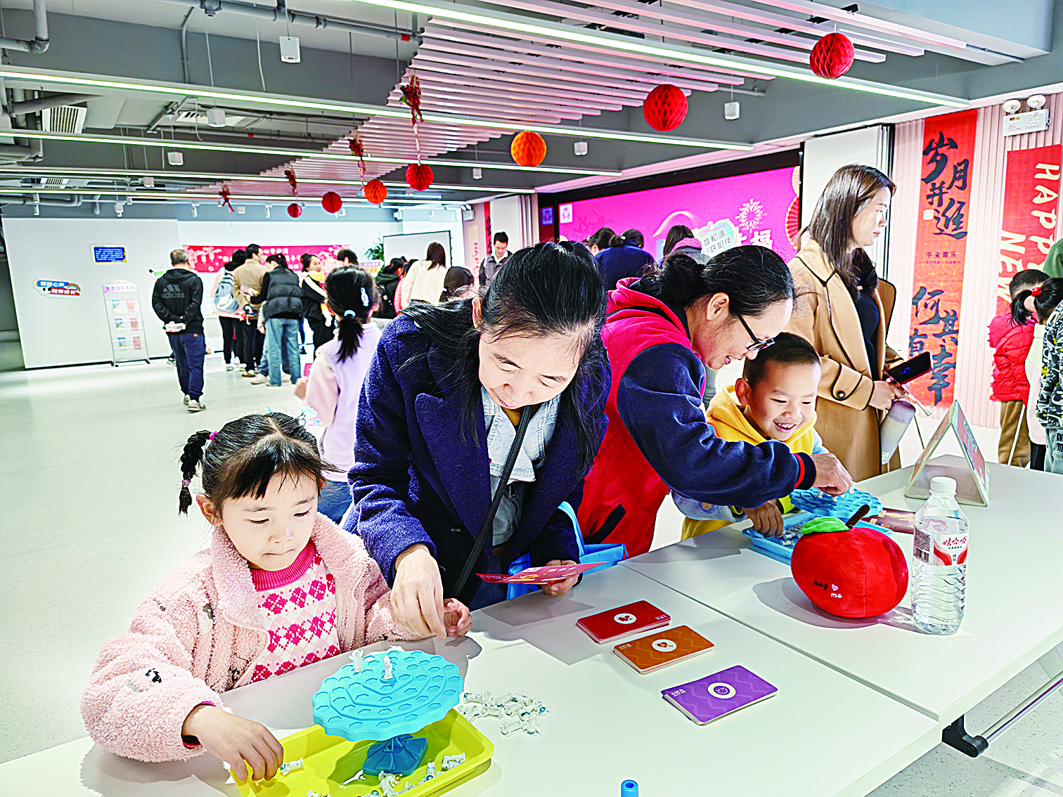 本报讯 (龙岗融媒记者 刘雯琪 通讯员 傅美琳) “妈妈,你看我描的‘福’字多好看!”“这个桌游挑战我们一定能通关!”……近日,由龙岗区妇联主办的“龙岗年趣‘家’倍幸福——2026年新春亲子市集”热闹开市,50对亲子家庭齐聚一堂,在非遗手作、趣味游戏与绘本共读中沉浸式体验新春年俗,定格温馨美好的亲子时光。