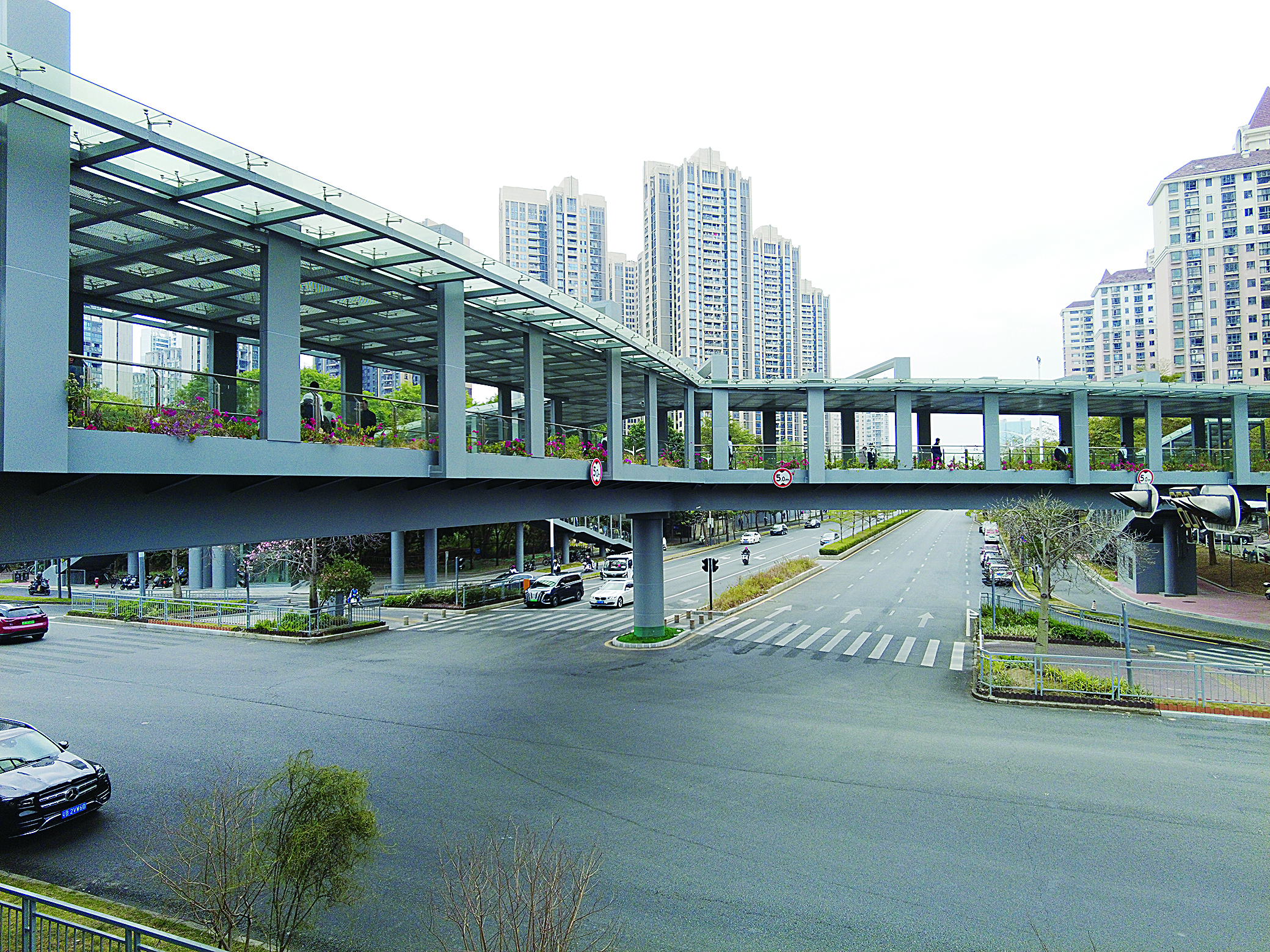 采访中,记者看到市民有序通过天桥往返,原本人车混行的路口交通压力得到明显缓解。经常要接送孙女上下学的陈阿姨说:“天桥开通后,接送孩子安心多了。以前总要紧紧牵着孩子的手在车流里穿行,如今走在天桥上,安全、省心!”