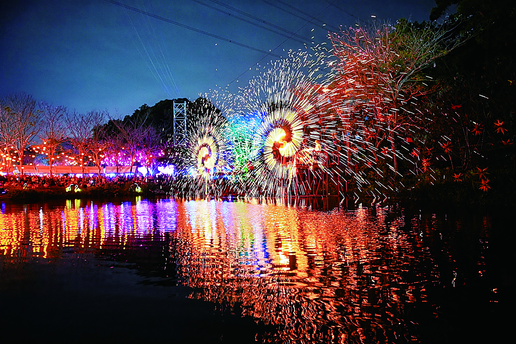 春节假期恰逢繁花盛宴演出时段,水上舞台每日多场演艺精彩不断,NPC互动、水上飞人、汉服表演、非遗打铁花等多元内容融合,为游客带来沉浸式夜游体验,亲民的票价更是吸引了大批游客前往,成为龙岗夜游经济的重要支撑。
