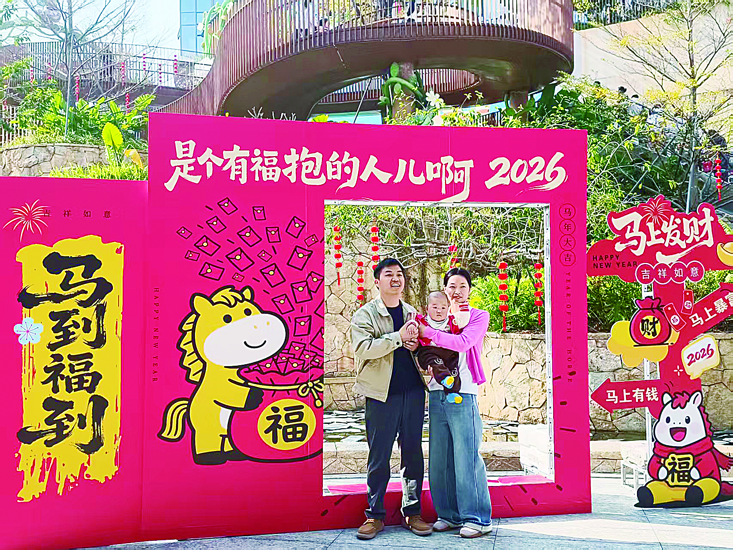 龙岗儿童公园新春氛围拉满、人气爆棚。园区缀满近千盏花灯,让亲子家庭沉浸式感受传统节日魅力。大门区域的主题市集备受青睐,家长与孩子携手体验糖画、手工制作等项目,近距离观赏吹糖人、国风绘画等传统技艺,在指尖互动中触摸传统文化的温度;特色小吃香气氤氲,让亲子家庭在游玩之余,尽享“舌尖上的春节”。此外,国风巡游、NPC送福等互动活动在园区轮番上演,各类马年专属打卡点也成为亲子家庭寄托心愿、定格幸福的好去处。“第一次来这里,玩了很多项目,很开心。”农历大年初三一早,和家人从开平过来游玩的黄梓恒小朋友兴奋地说。“一天下来,游乐、表演、互动游戏全都体验了,园区吃的东西也很多,真正实现一站式亲子出游。”带着孩子前来的市民陈女士表示。