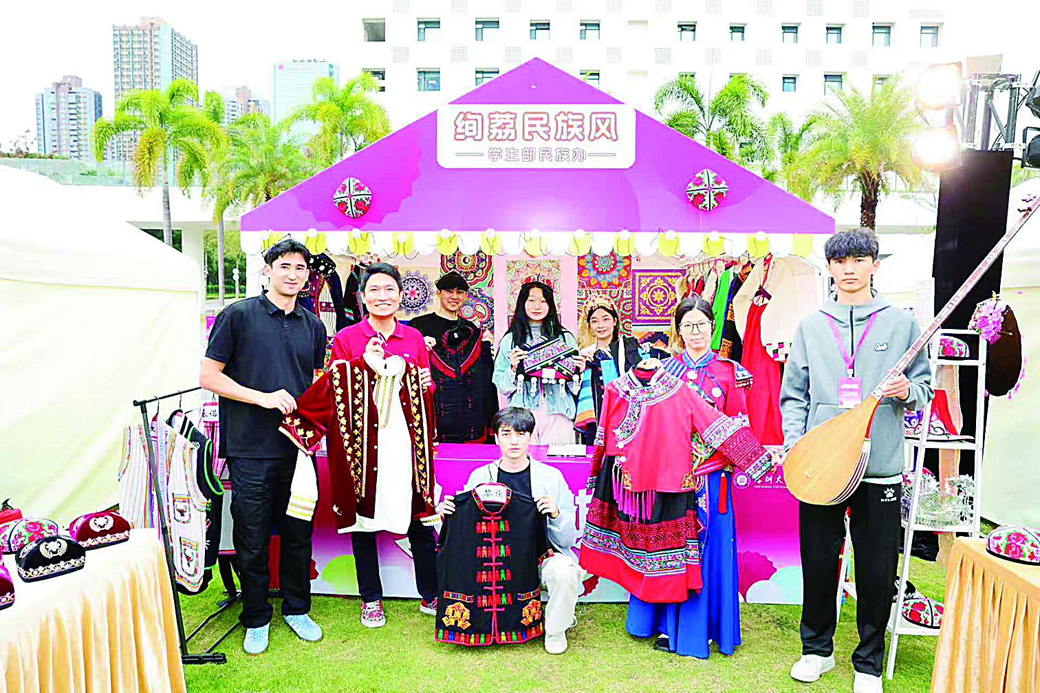 现场设有四大特色街区、70+特色摊位,可赏非遗匠心,接诗词雅令,探科创妙境,享学科趣游,览民族风物,品校园美食。在超级马荔区,深圳大学学生部民族办精心打造绚荔民族风体验摊位,市民可以尽情体验各民族特色服装穿搭展示不一样的风采,还可以参与海娜手绘留下独特纪念,更有趣味十足的知识问答,边玩边学,好礼不断。