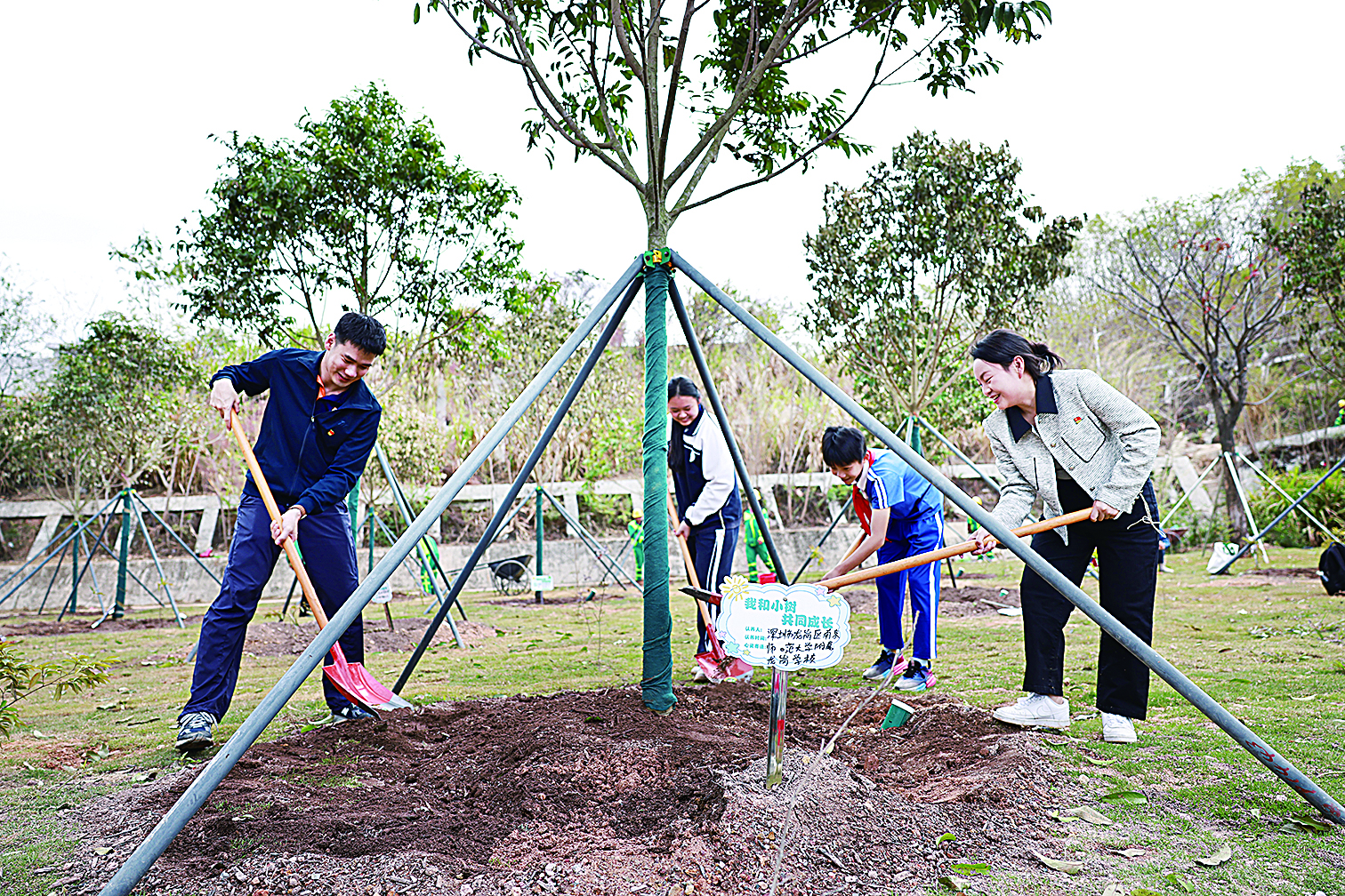 植树活动当天,龙岗区各街道同步开展了各类丰富多样的植树活动,在辖区公园、林地、市政道路等关键点位协同植绿,形成了“核心引领+全域覆盖”的植绿新格局,全区计划种植紫花风铃木、人面子、宫粉紫荆、异木棉等优质苗木共1028株,种植总面积达2.3万平方米。