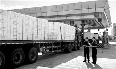 国庆假期,湛江保税物流中心(B型)车水马龙。在湛江海关所属霞海海关的监管下,装载着4000余吨芬兰进口纸浆的货车驶出卡口,驶向等待原料投产的湛江晨鸣浆纸有限公司车间。