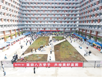 迎新现场有交通指挥、志愿服务、后勤保障、医疗服务等,大批师生志愿者和工作人员穿梭于校园内外,热情耐心迎接新生和家长。