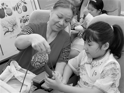 参加活动的家庭手工制作艾草锤。通讯员 张海花 摄