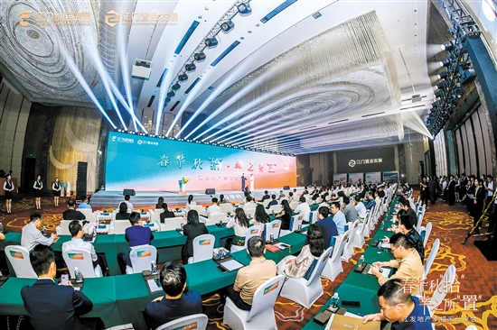 为助力江门构建房地产发展新模式,满足侨乡人民群众对优质住房的新期待,10月30日,江门市和兴置业发展有限公司(以下简称“江门置业发展”)在蓬江区万达嘉华酒店举办江发地产幸福家分享会活动,分享品牌故事,传递国企情怀。市政府、市直相关部门单位领导,蓬江区政府、相关职能部门、相关镇(街)领导,市属三大平台国企、行业协会、金融机构、新闻媒体代表等约200人参加活动。