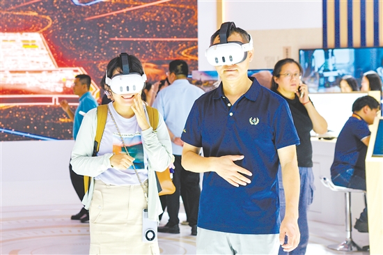 参展者在2025年服贸会文旅服务展馆北京市文物局展台体验《看·见殷商》MR沉浸式观展。