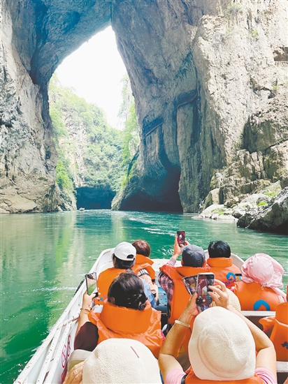 奢香古镇的“古彝梯田”与彝族风格建筑相映成趣,让团友们惊喜不已;九洞天作为“地下山水画廊”,乘船穿行其间,“天空时隐时现”的奇幻景象,让人仿佛穿越时空隧道,被誉为“中国岩溶百科全书”实至名归。