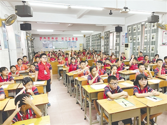 “青苹果大课堂”上,学生们积极参与互动、回答问题,学习防蚊灭蚊知识。