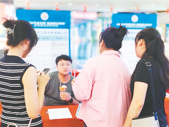 求职者在招聘会上了解岗位具体条件和要求。