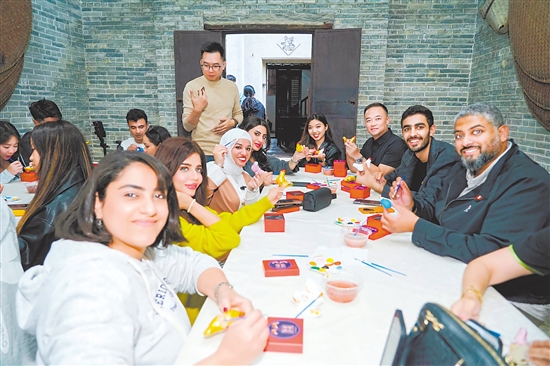 侨乡的惊喜不止于碉楼。在非遗体验区,大家被“镇濠泥鸡制作技艺”深深吸引。洛奇亚·亚库特指尖蘸着红漆,沿着泥鸡细细描边,体验上色装饰。当“咕咕咕”的清脆叫声从手中传出时,大家都笑了,并纷纷举着自己的“作品”合影。“这是我第一次做传统手工艺品,这个声音太可爱了!”洛奇亚·亚库特晃着泥鸡,眼里满是新奇,“这样的体验,让我离江门文化更近了。”