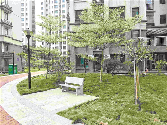 环境整治后,南湖湾小区原本杂乱的绿化环境变得整洁舒适。钟珍玲 摄