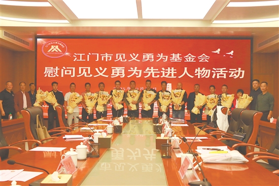 为弘扬见义勇为精神,传递社会正能量,昨日,江门市见义勇为基金会举行2025年度慰问见义勇为先进人物活动,为江门见义勇为人员代表及其家属献上鲜花、送上慰问金。