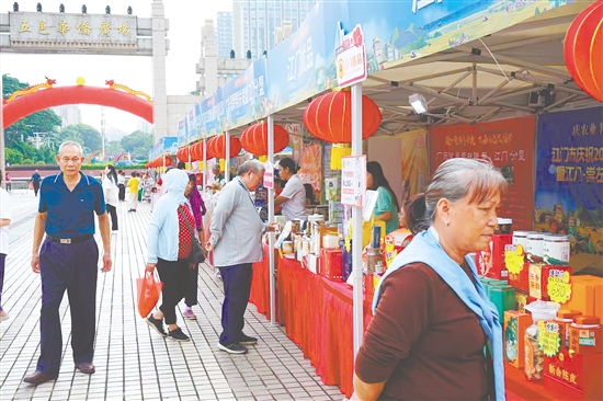 “江门优品”展区内,各式特产荟萃,呈现了丰富多彩的“江门味道”。