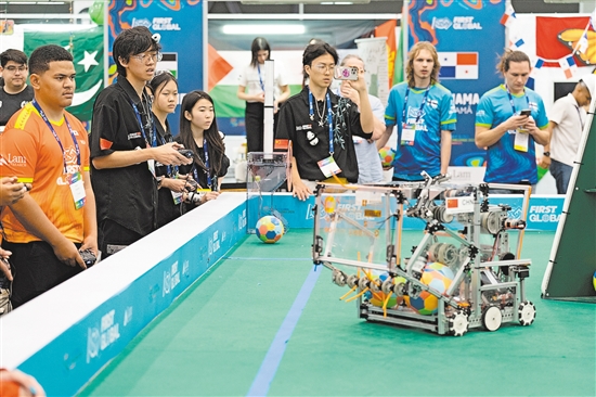 10月28日,在巴拿马首都巴拿马城,中国队队员参加2025年FIRST全球机器人挑战赛的练习赛。新华社发
