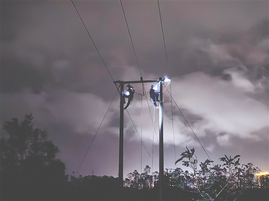 台风“桦加沙”期间,恩平供电局抢修人员昼夜不息,连续奋战。 谢静宜 摄