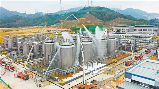 “报告!化工装置泄漏,储罐区有浓烟冒出!”11月4日,珠西新材料集聚区内,一场紧张的应急演练拉开帷幕。当天,江门市将消防宣传月启动仪式与综合应急救援演练深度融合,模拟珠西新材料集聚区内天赐材料(江门)有限公司及周边区域,在极端恶劣天气条件下发生的一系列险情,检验我市应急救援实战能力。