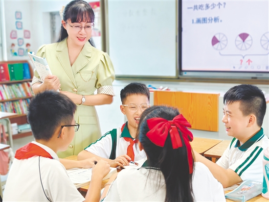 谭宏帙纪念小学教师甄雁玲至今记得郭素媚陪伴备战市级赛课的夜晚:“她一遍遍帮我调整教学设计,甚至亲手制作教具,告诉我‘课堂要让学生看见数学的美’。”最终,甄雁玲斩获开平市一等奖,并成长为开平市名教师。近年来,郭素媚团队中6人获开平市级赛课一等奖,3人成长为名教师,其领衔的数学教研组获评“江门市先进教研组”。
