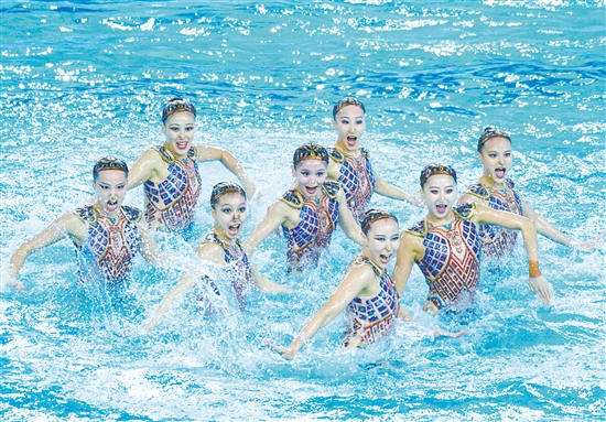江门日报讯 (文/图 记者/郭永乐) 昨晚,第十五届全国运动会花样游泳集体项目决赛在江门体育中心游泳馆举行,拥有数名奥运冠军坐镇的北京体育大学队实力超群,以总分867.9665分摘得该项目金牌,这是十五运会江门赛区诞生的首枚金牌,“水中芭蕾”在“中国舞蹈之城”江门精彩绽放。