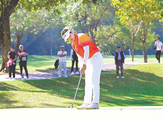 广东队选手张维维在比赛中。11月16日,她获得十五运会高尔夫球女子个人赛冠军。