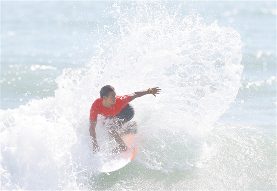 男子短板决赛中,吴世栋凭借对浪型的熟悉,第一道浪便抓住“能量浪”得到了7分的高分,第二道浪他延续了良好的状态,拿到6.17分,最终凭借这两次高分以13.17分的总成绩夺金。