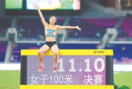 女子100米决赛中,陈妤颉逐渐建立较大优势,最终把个人最好成绩提升了0.19秒。“其实跑得很放松,把自己的技术发挥出来了,之后还是要再把这个技术给稳定下来。”陈妤颉赛后说。