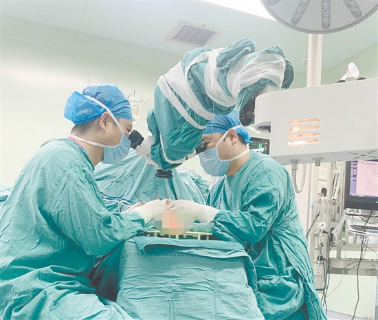 手术在高倍显微镜下进行。医生们用比头发丝还细的缝合线,一针一针地吻合细微的血管,确保血流畅通。手术从当天下午2点30分开始,到傍晚6点30分结束,历时约4个小时,这场凝聚匠心与技术的修复手术终于圆满完成。