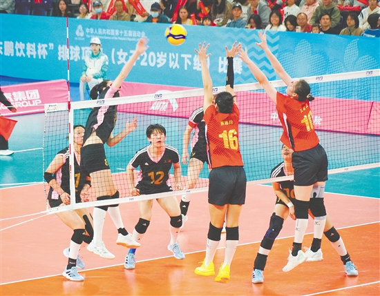 江门日报讯 (记者/任佳燕) 11月18日晚,江门体育中心体育馆灯光璀璨、人声鼎沸,第十五届全国运动会排球项目女子20岁以下组决赛在此精彩上演。比赛中,上海队与山东队上演强强对话,经过四局鏖战,山东队最终以3:1力克上海队,夺得冠军。