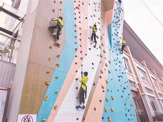 “体育的本质是人格教育。攀岩课程的初衷其实并非培养专业运动员,而是让每个孩子在挑战中认识自我、在协作中学会共情。未来,我们计划将攀岩与学科教学深度融合,开发跨学科主题项目,例如结合物理力学原理分析攀岩技术,或在攀岩情境中融入地理知识,进一步拓展体育教育的广度与深度。”学校相关负责人廖祖权告诉记者。他还表示,学校目前还引进了射箭、击剑等非常规体育教育项目,不断深化健全体艺特色教育体系,“以生为本”构建多元化体育教育大格局,为培养全面发展的新时代青少年注入持久动能。