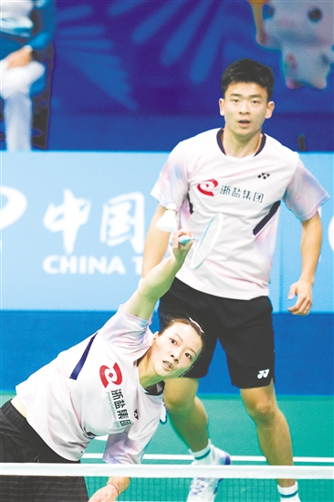 11月20日,浙江队组合郑思维/黄雅琼(前)在比赛中。新华社发