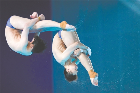 陈艾森/朱子锋在男子双人10米跳台比赛中表现出色,助力广东队获得跳水男子团体赛冠军。