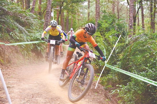 山地自行车赛在江门恩平举行,选手们在岭南山水间上演速度与激情。本届全运会,江门共承办花样游泳、排球(男子成年组、女子20岁以下组)等4个竞体项目,均圆满完赛,收获一致好评。 周晓营 摄