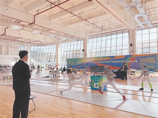 江门日报讯 (文/图 记者/吴健争) 11月25日,2025年广东省青少年击剑锦标赛在恩平市全民健身中心正式开幕,赛事将持续至12月3日。作为省内青少年击剑项目的最高水平赛事,本次比赛吸引了全省各地的击剑小将齐聚恩平,在重剑、佩剑、花剑等项目中展开激烈角逐。