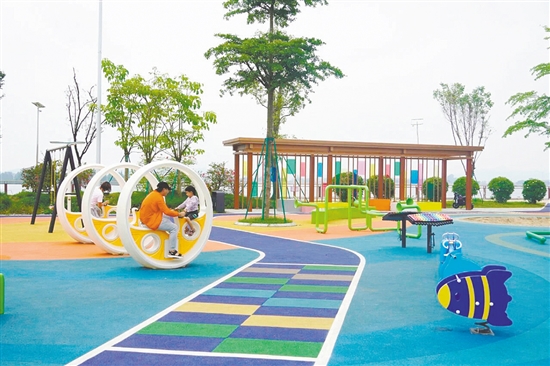 潭江生态湿地长廊内精心打造的“渔趣”儿童主题乐园,成为广受市民欢迎的家庭休闲新地标。
