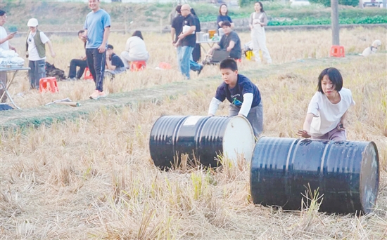活动当日,田间地头里,大人带着孩子就地取材,默契配合垒砌土窑、精心烤制窑鸡,在劳作中亲近自然。“周末带孩子来感受乡村氛围,品尝窑鸡后再听听音乐,体验非常棒。”市民吴女士说。夜幕降临,象征团圆兴旺的篝火燃起,众人围坐周边,在悠扬歌声与趣味游戏中拉近距离、畅叙乡情。