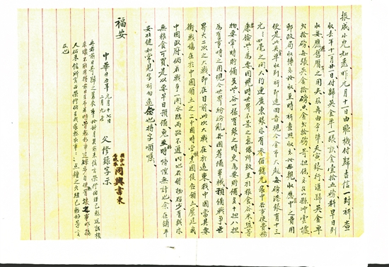 “现今世界纷纷乱,各国筹备军械,预备战争,世界大二次之大战,即在目前,此次大战,在于远东,我中国当其要冲,战场在于中国领土之上……”信中的判断,是一位海外游子对家国命运的深切忧虑,更成为华侨群体早于二战全面爆发前,精准预判中国将成为东方主战场的珍贵见证。