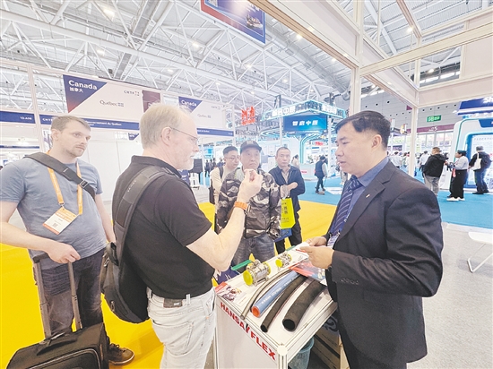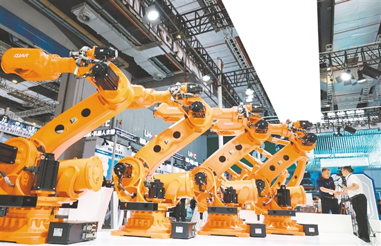 新质生产力蓬勃发展。图为中国国际工业博览会展出的工业机器人产品。