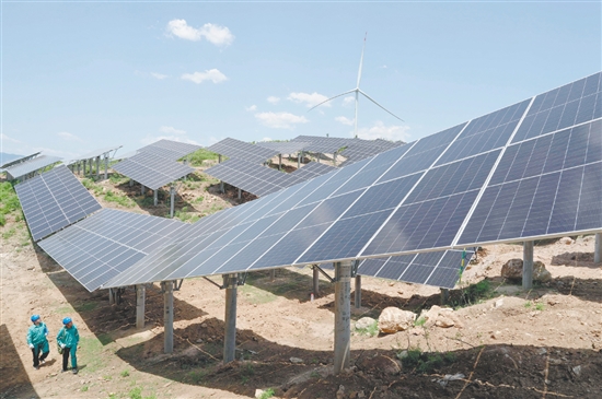 可再生能源助力中国经济向“绿”而进。图为位于河北的“风光互补”发电场。