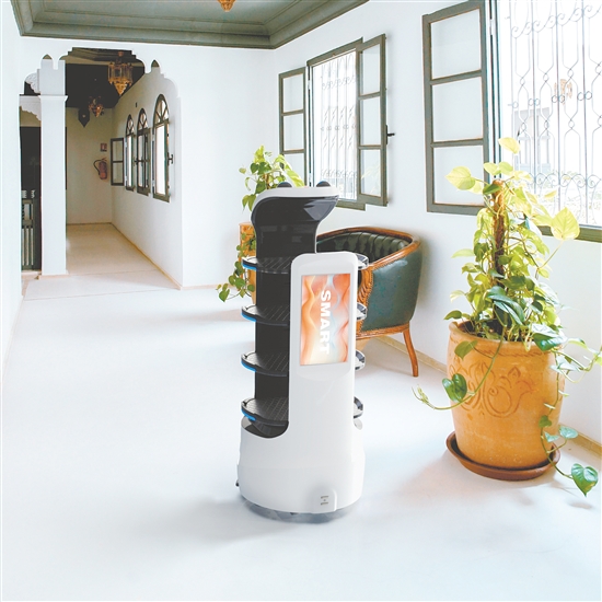 鹤山万德昌机器人有限公司的“熊大”智能装备,可用于养老院送餐。