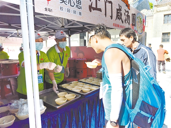 组委会为完赛跑者提供咸汤圆等冬至美食。蔡昭璐 摄