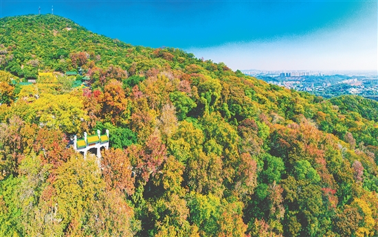 圭峰山上大片的枫叶已由绿变红,甚是美丽。