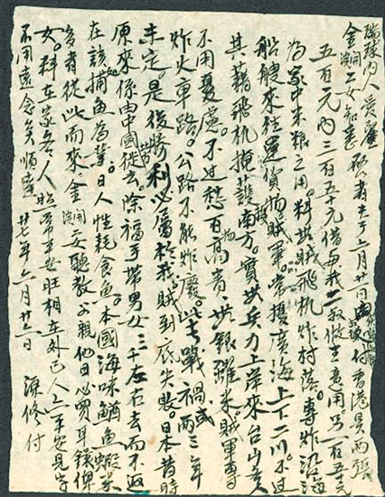 “得到一个世界上一大强国”,陈钦扳在信中的呐喊,道出了海外华侨对民族复兴的深切渴望。1938年6月10日,华侨李文信在给妻子余秧好的信中,坦然提及战局的暂时失利:“现下中日两国打仗,我国亦有多少失利”,但话音一转,便是不容置疑的信念——“但将来一定我国胜利”。