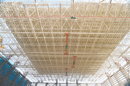 本次吊装的阀厅网架重达1032吨,面积相当于一个标准的足球场。