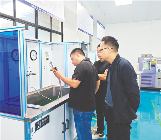 在开平市水口镇的翰森卫浴实验室内,工程师与广州航海学院肖景教授团队正专注地围在测试台前,观察屏幕上的数据变化:随着冷热水管阀门缓缓转动,智能恒温水阀初代样机精准调节着水流温度与流量。自2025年8月双方携手攻关智能水阀关键技术以来,这样的协同研发场景已成为常态。目前,原型样机已进入试运行阶段,成为开平市“双百行动”科技港运作下的标志性合作成果之一。