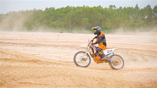 作为全省首个超200亩的摩托车公共试车场,蓬江摩托车试车场按照“国资+重点摩企”的“1.5级开发”模式建设,已建成1.6公里环形主试车道及颠簸路、涉水路等10条特色试车道。试车场内引擎轰鸣、黄沙飞扬,外国客商们骑上摩托车,在上坡、下坡间尽情驰骋,全方位测试车辆性能。近年来,江门市摩托车产业链持续保持强劲增长态势,其中蓬江区摩托车及零配件产业入选省级中小企业特色产业集群,进一步助力摩托车企业抢抓市场机遇。