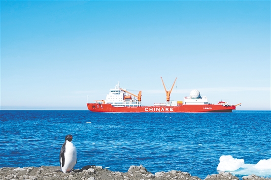 图为12月29日在秦岭站海域拍摄的“雪龙”号极地科考破冰船。