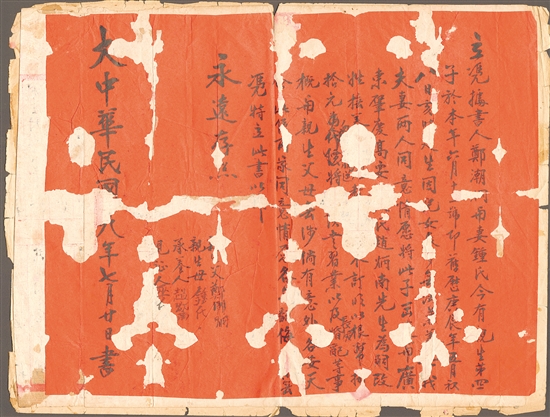 江门籍南洋小贩郑潮炯“鬻子救国”的契约书目前在中国侨都华侨华人博物馆展出。